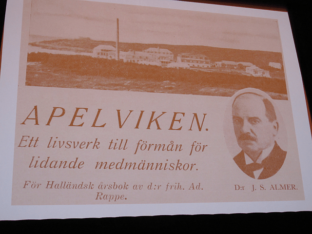 Föreläsningen handlade om D:r Johan Severin Almer 1861–1927, som var en svensk läkare och politiker, kanske mest känd för att han grundade Kustsanatoriet Apelviken. En mycket bra och underhållande föreläsning.