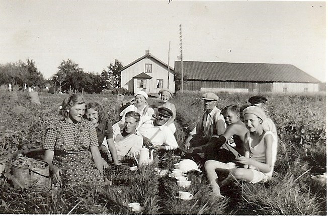 Gretas i Lerberg. Ärtplockning 1936. Älvsåkers Hembygdsgille