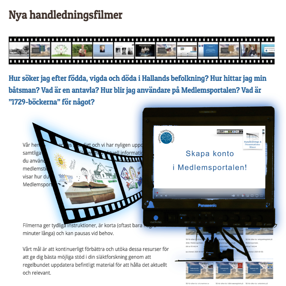 Hallands Släktforskarförening har tagit fram ett antal uppskattade handledningsfilmer om föreningens utbud.