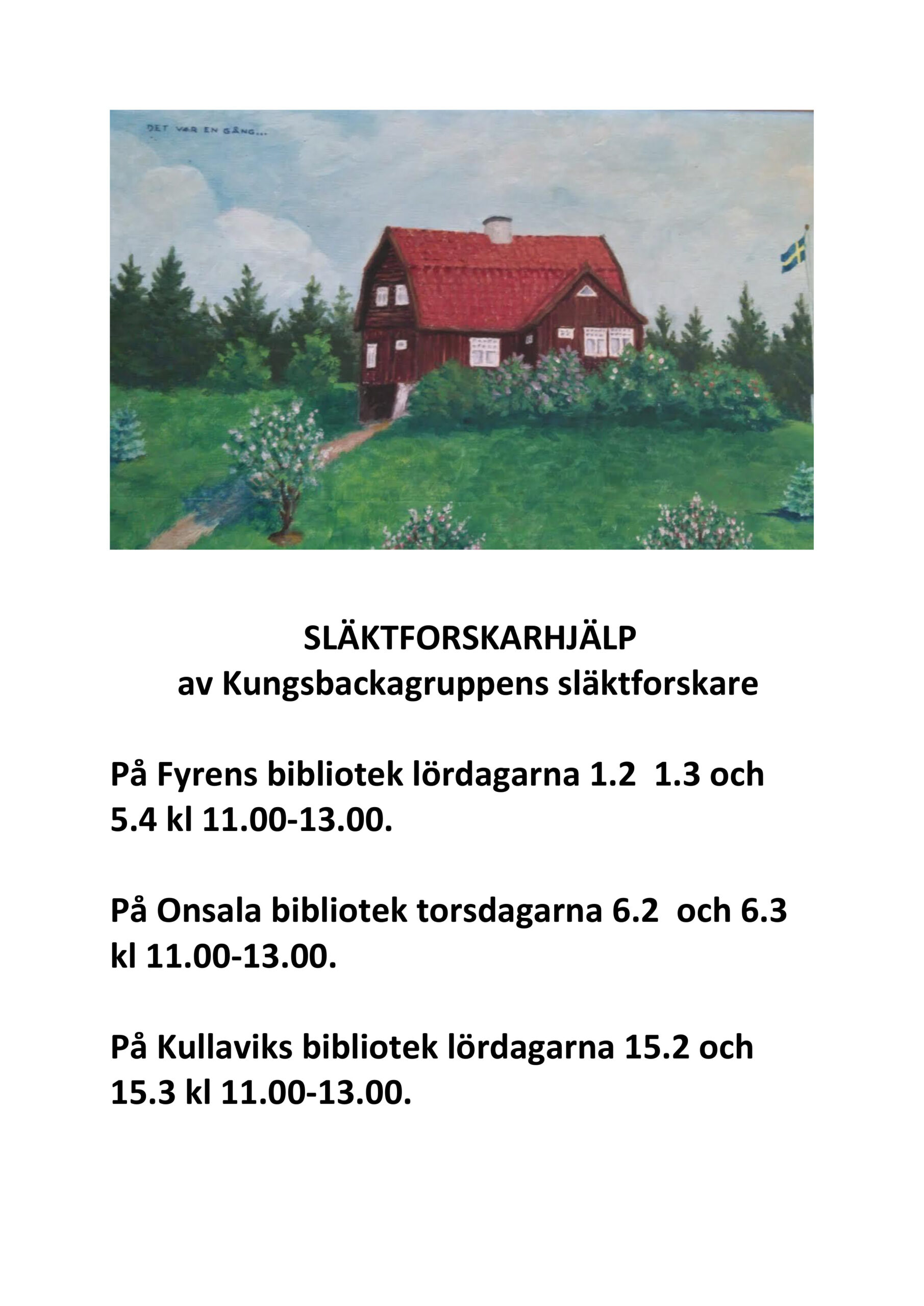 Släktforskarcafé på Nordhallands Hembygdsmuseum i Kungsbacka kl 14.00–16.00 PlatsNordhallands Hembygdsmuseum DatumFredag 31 oktober Tid14.00-16.00 Barbro Majgren inleder – ”DNA testet klart. Vad gör jag nu?” Barbro är idag ordförande i Tanums … Läs mer