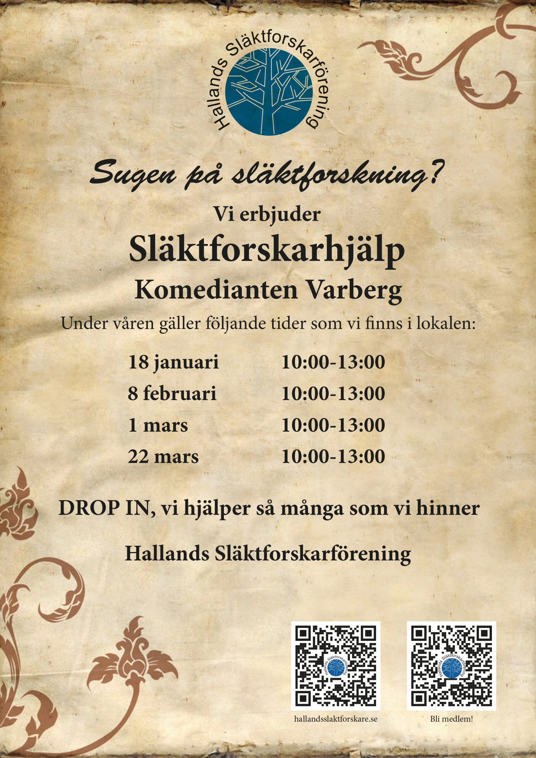Välkommen till Hallands Släktforskarförenings monter på Släktforskardagarna i Västerås 2025! Hos oss möter du släktforskningsintresserade från hela landet, får möjlighet att upptäcka din halländska historia – och ha roligt på … Läs mer